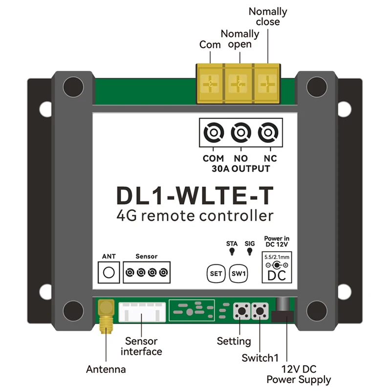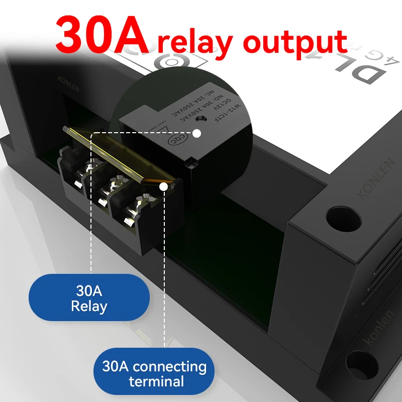 2. With one 30A relay ouput, It can control all kinds of high power equipments on/off by SMS/Call or via App (WLTE Control) remotely. The App communicates with controller via 4G data internet acess.
