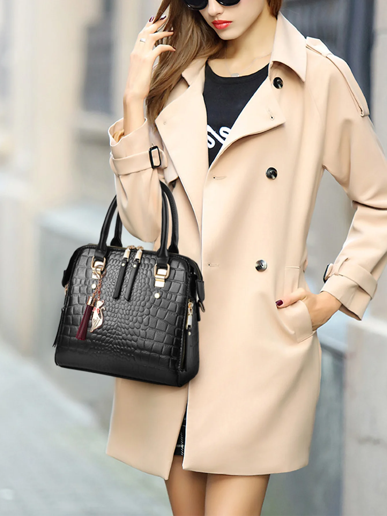 Luxury Crocodile Pattern Handbag Women Winter New PU Leather Tassel Shoulder Bag Brands Design Handle Bag Lady Purse