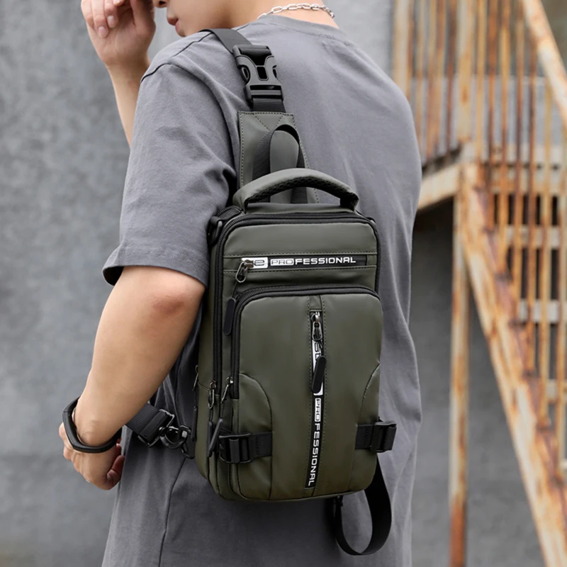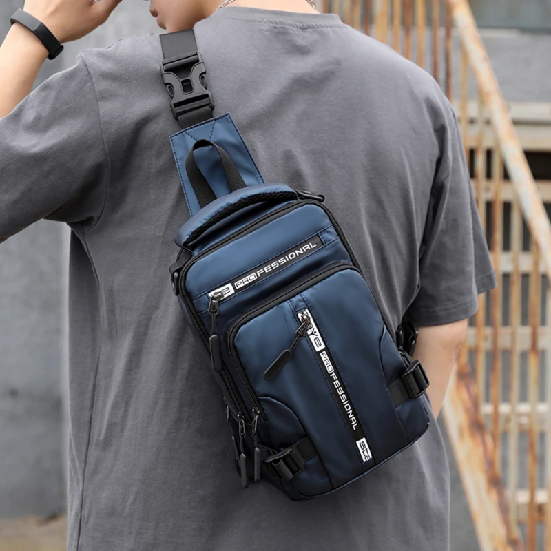 Multifunction Nylon Chest Bag Men Waterproof Men Crossbody Bag Anti-theft Travel Bag Male USB Charging Chest Bag Pack Backpack