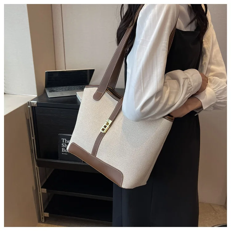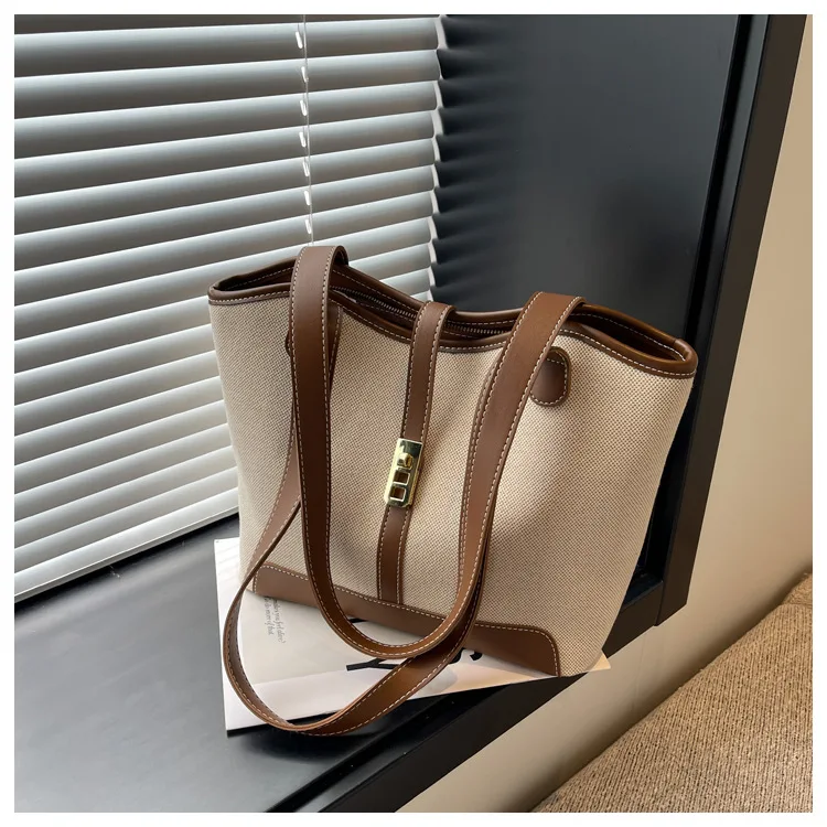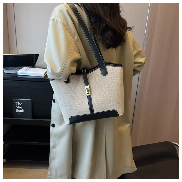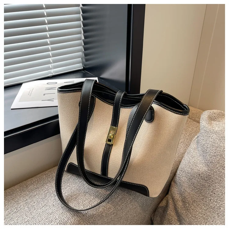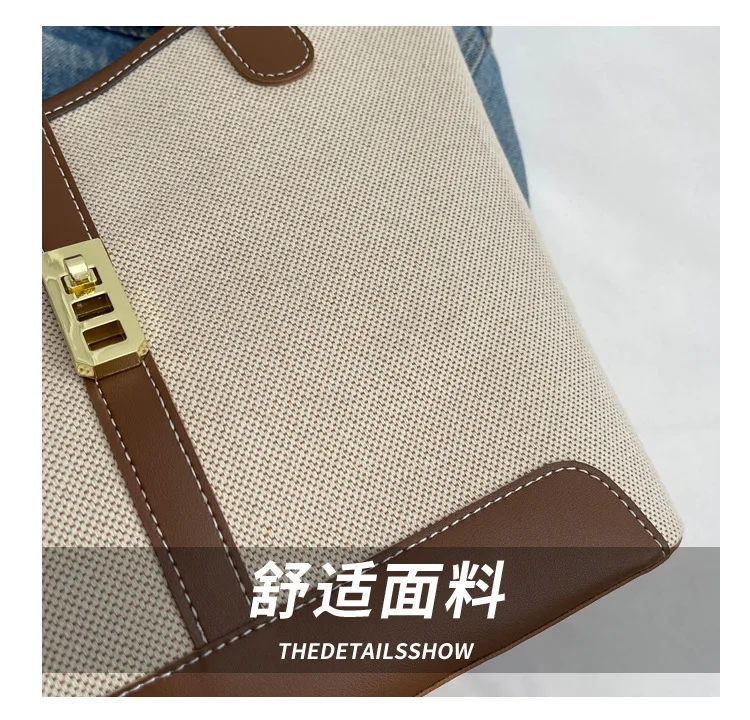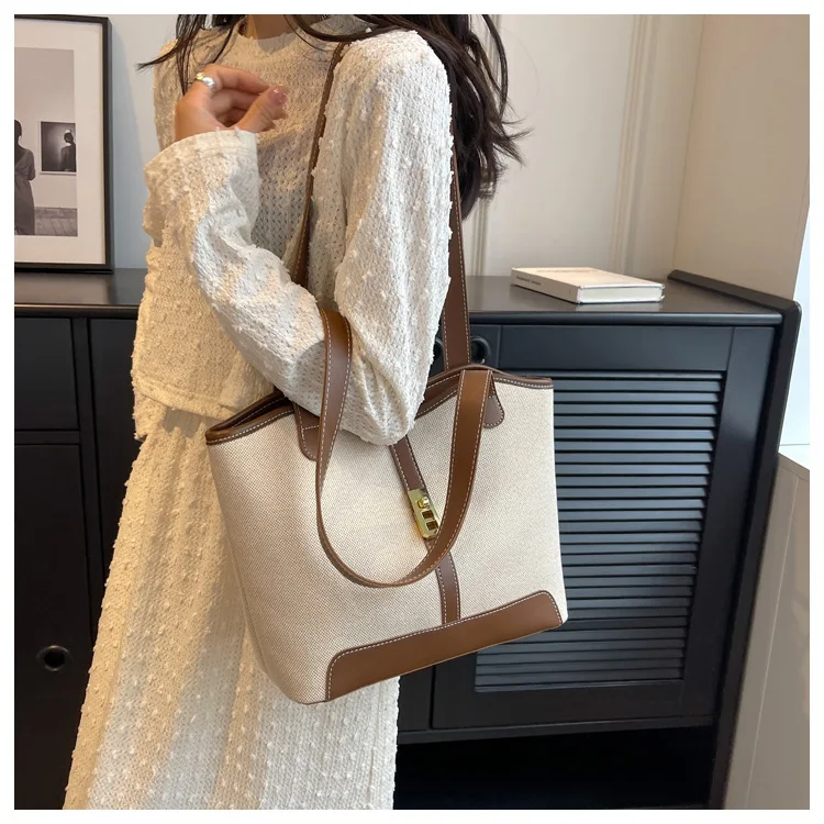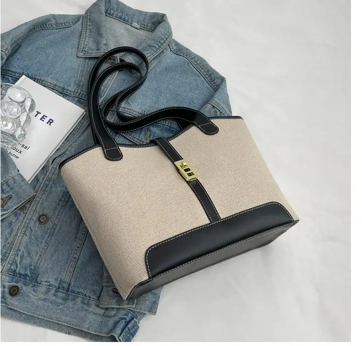 New Fashion Contrast Canvas Bag Luxury One Shoulder Handbag Casual Versatile Crossbody Bucket Bag Large Capacity Tote Bag