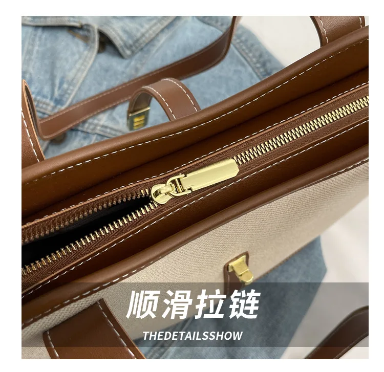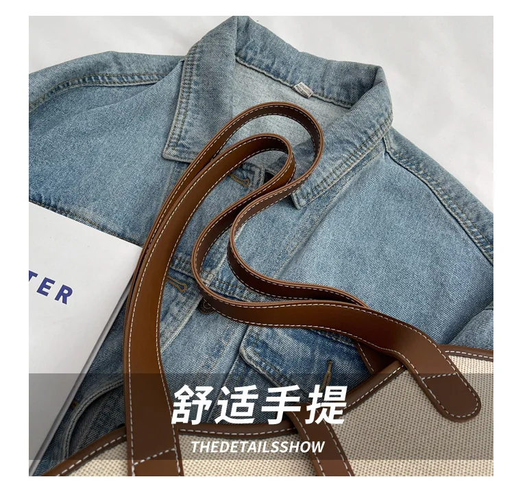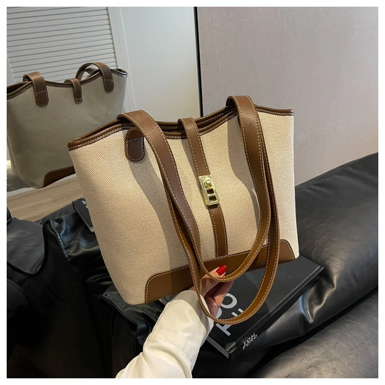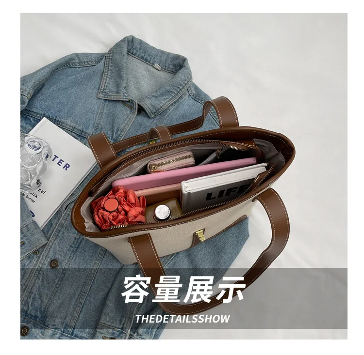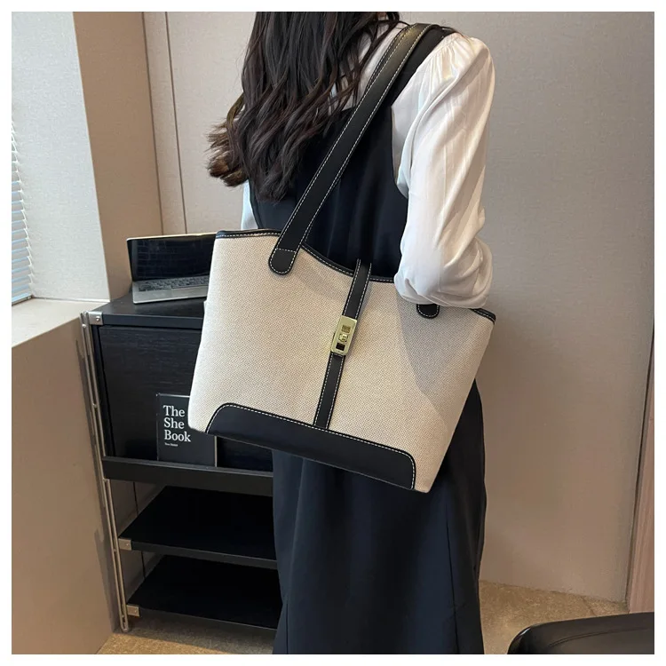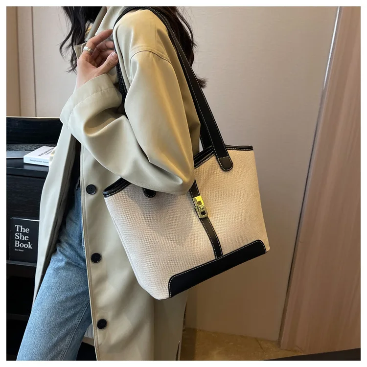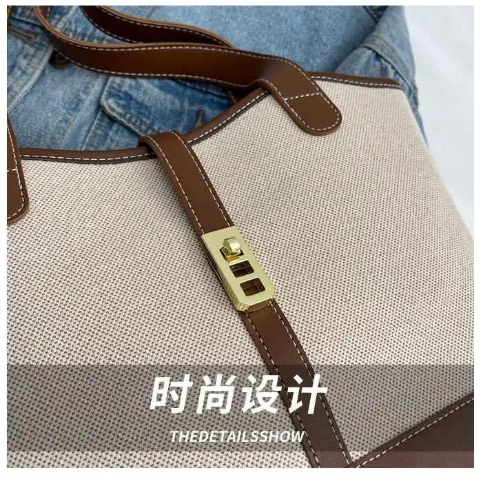 New Fashion Contrast Canvas Bag Luxury One Shoulder Handbag Casual Versatile Crossbody Bucket Bag Large Capacity Tote Bag