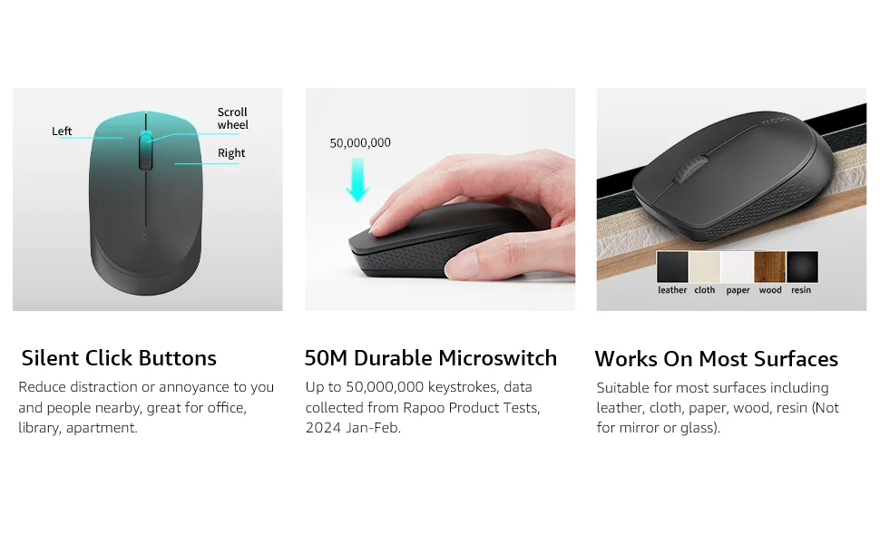【Convenient & extended battery life】 Rapoo implements low-power technology and a power-saving design with power switches to extend battery life, 12 months battery life under normal conditions. Portable compact size, easy to carry on for office and business trips or travel.