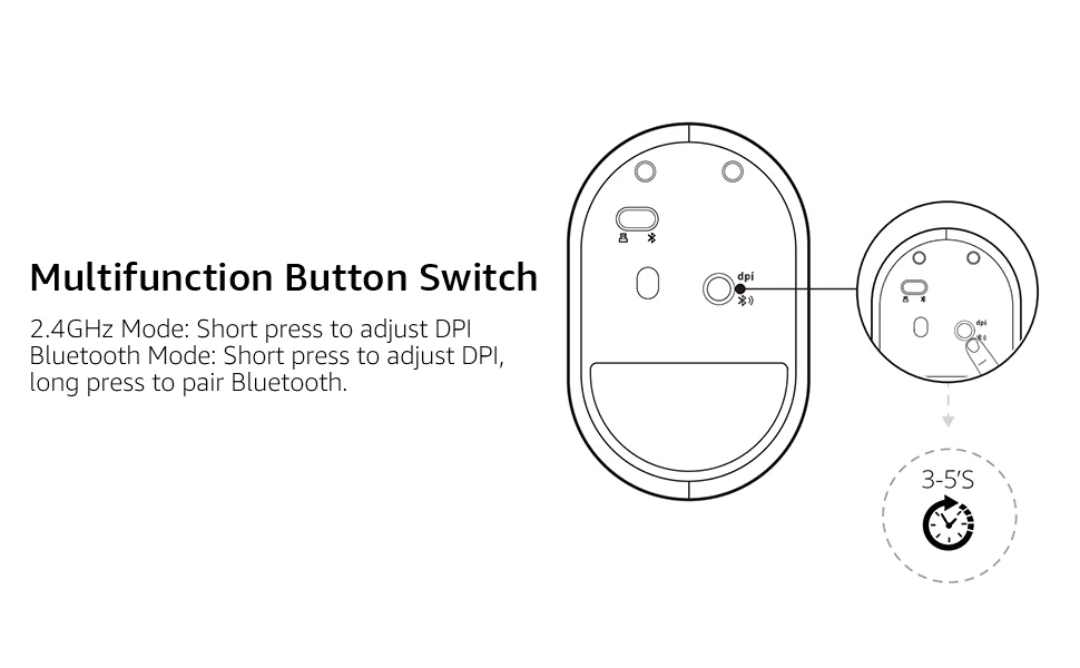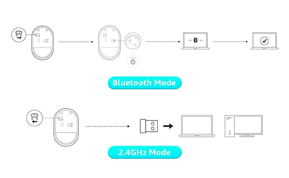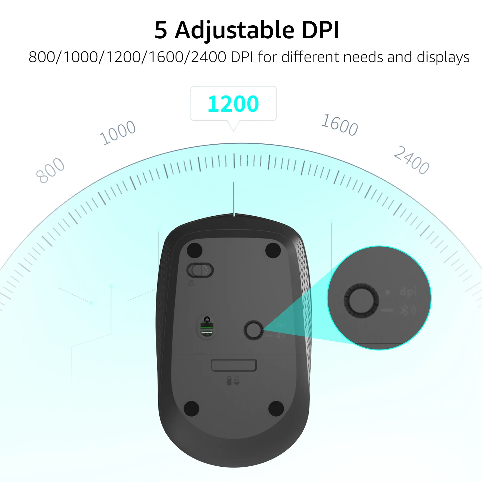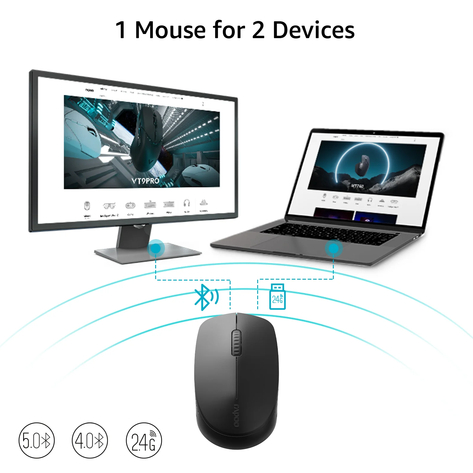 【Easy to Support 2 Device 】Rapoo Bluetooth 4.0/5.0 Wireless 2.4G technology wireless mouse support 2 devices, one devices by Bluetooth and the secondthrough 2.4GHz USB dongle. With one mouse, you can switch devide easily by simple button. Please note you cannot control two devices at the same time.