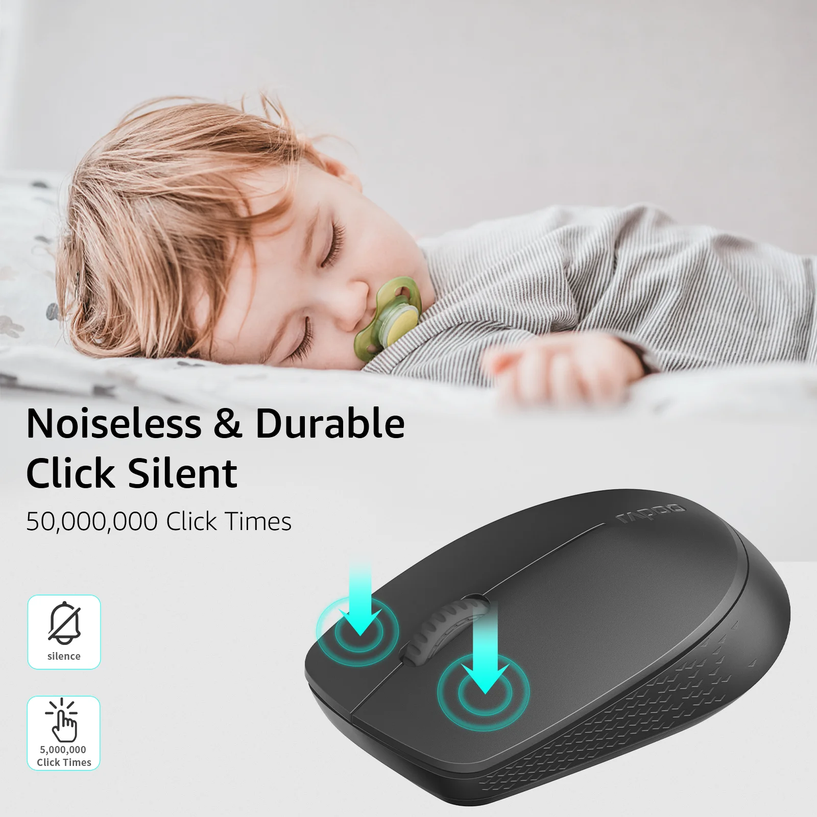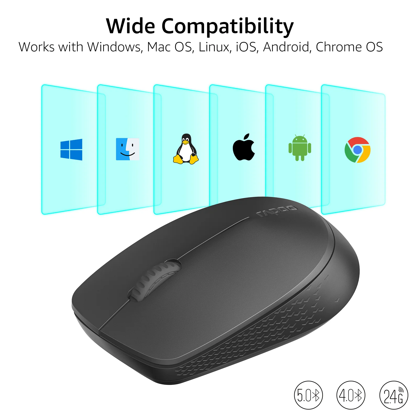Rapoo M100 Multi-Mode Wireless Mouse Silent 2400DPI Bluetooth Mouse Support 2 Devices for Windows PC Laptop Computer