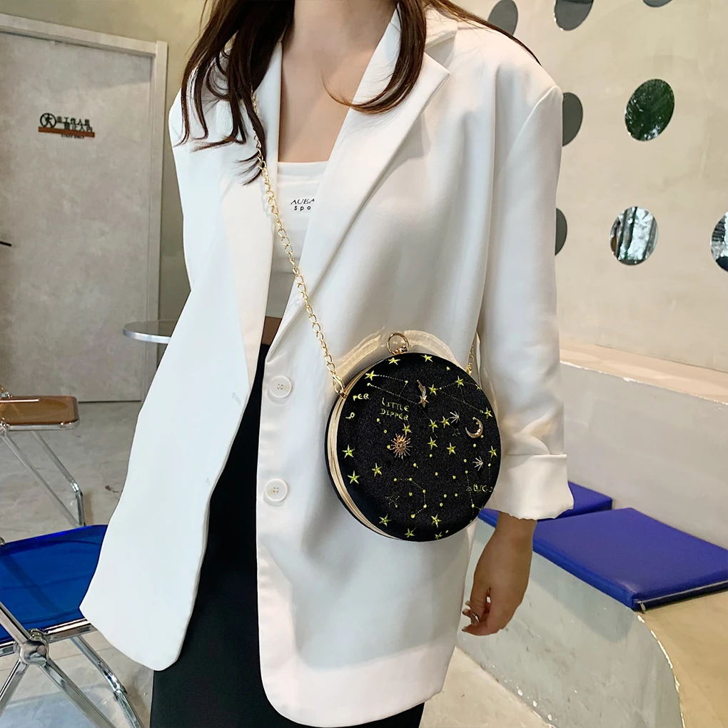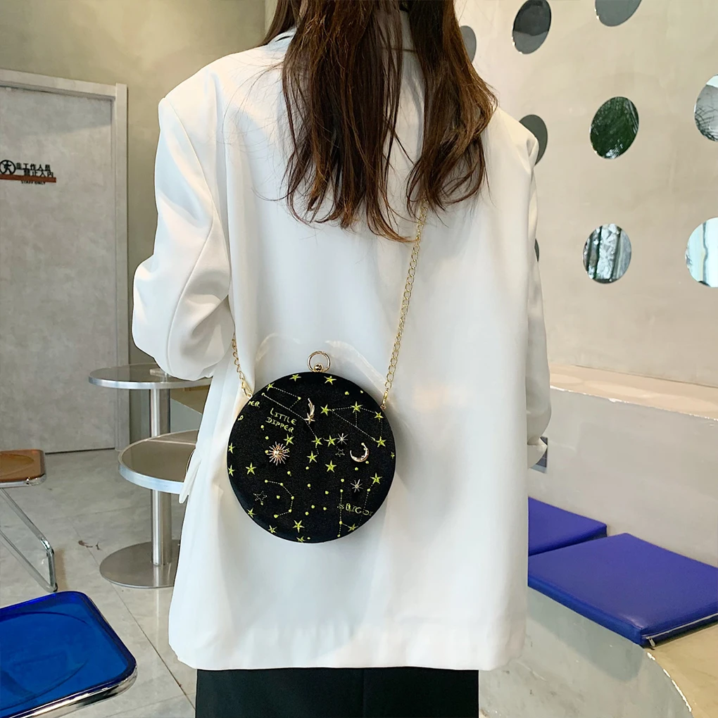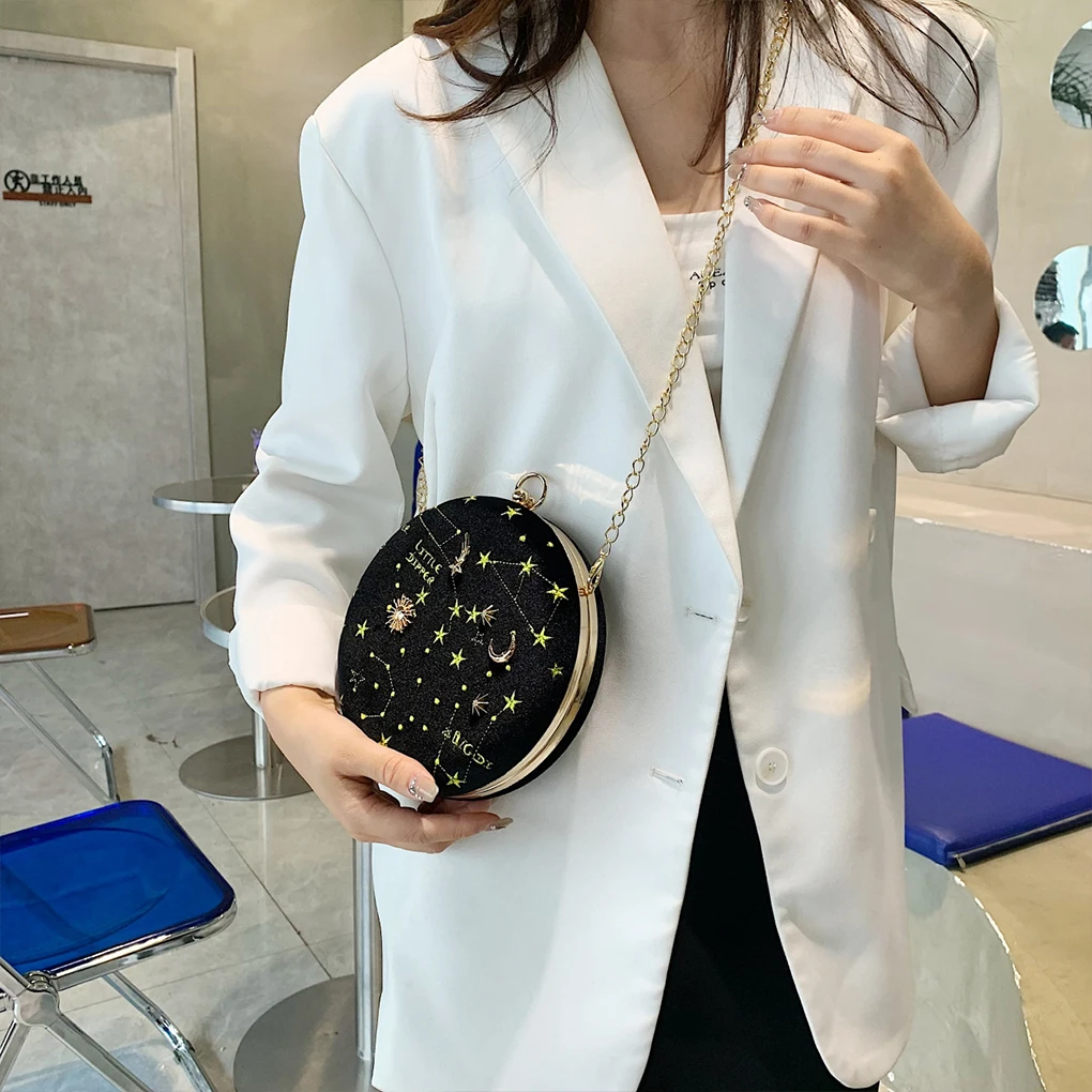Star Moon Women Velvet Shoulder Bag Phone Wallet Storage Handbag Ladies Party Banquet Traveling Crossbody Pouch